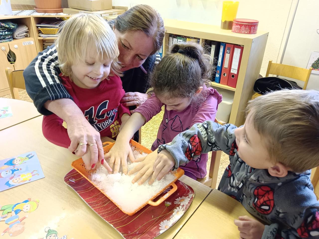 Zimu máme rádi. Užíváme si jí venku, uvnitř jí malujeme, zkoušíme vyrobit sníh nebo si o zimě zpíváme.